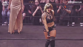As Charlie mustered herself, a startled Shotzi scurried to the opposite corner letting out a maddening scream. Shotzi’s startle turned to rage. Charlie’s eyes locked firmly on Shotzi, her passion to win her first singles championship since October 2015 engulfing her heart with one last hope. But Charlie’s body told her a cruel no, leaving Charlie prone to a sickening variant of the switchblade kick. Charlie crumpled to the canvas. Shotzi made the cover. 1-2-3. And still HOG Women’s World Champion Shotzi Blackheart.