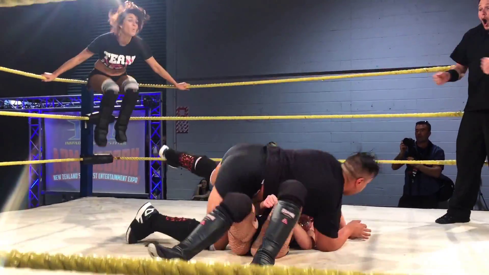 Weekend Worriers was a series of documentaries that followed MCW stars Elliot Sexton (Duke Hudson) and Mr. Juicy. Evie made some appearances in Weekend Worriors 2 including footage from a tag team match featuring Juicy and her as a team at New Zealand's Armageddon Expo. Juicy was excited to finally team with his friend and join Team Kick.