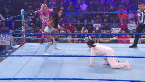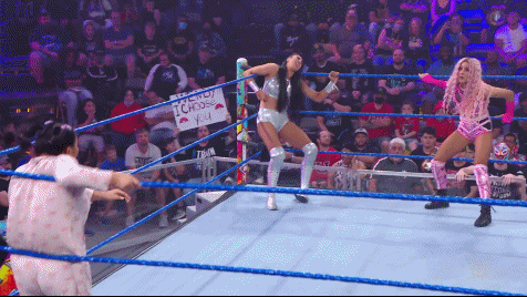 Once Dakota calms down she flawlessly performs alongside her new partner. They successfully pull off some impressive double team moves. Dakota even stomp-rallies the crowd a bit to get behind Wendy when her partner needs some momentum. Soon after in need of some momentum herself Dakota rallies the crowd with a Daphne scream then strikes Hartwell down with the Kaio-Kick. Wendy and Dakota successfully hit top rope moves on Pirotta allowing Dakota to pin the Australian powerhouse to score their first victory as a team.