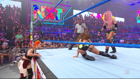 April 12, 2022. Dakota finally challenged Mandy for the NXT Women's Championship. Mandy would have her Toxic Attraction cronies Gigi Dolin and Jacy Jayne at ringside while Dakota entered this fray alone, not willing to put Wendy in harm's way. Dakota is The Last Knight; the sole burning ember of the Black & Gold Era whom Mandy has not faced or beaten. After the introductions both women came at each other, not holding back. Dakota would take out all three members of Toxic Attraction with a crossbody from the top rope to the floor. But once the action returned to the ring, a gutwrench suplex variant from Mandy gained her control for a bit.