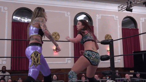 Mercedes Martinez was pissed. She had lost the Shimmer Championship to Kellie Skater at the previous volume. Mercedes relished destroying her first step back to regaining the championship. Unfortunately for Nixon Newell that step was her. But Nixon didn't intend to be anyone's step back to anything; rather she was going to make the former champion her step forward. Mercedes was accompanied to the ring by Trifecta stablemate Nicole Savoy. There were lightning effects on the ceiling of the venue: Was that a good omen for The Girl With the Shiniest Wizard?