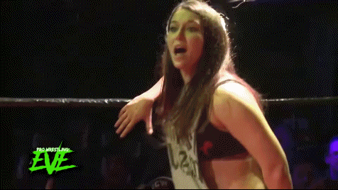 Newell responded with a bit more aggression, even teasing a signature move at one point and instead going for a chinlock to irritate the crowd. Such an attitude wasn't completely unfamiliar to her, having taken on the role of a heel elsewhere on the UK scene around that time. Unable to get a pin via a fallaway slam with a bridge, Nixon stood on top of Angel and choked her with both her feet. Angel fired back with some offense including a top rope elbow drop. Nixon got up and the two traded strikes, ending with Nixon superkicking Angel to the canvas.