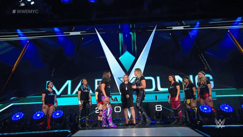 August 9th 2018. Future AEW referee Aubrey Edwards officiated Nox versus Ripley. This was not just a quarterfinal match -- it was a bout between two of WWE's top young prospects. The future. In the opening moments, Nox dived through the ropes to the outside with a tope, crashing onto Ripley and the steel ramp. Her left knee was visibly hurting as she tried to fight through the legitimate pain to make her way back into the ring.