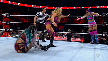 Natalya covered Carter who kicked out. Carter took back control with a superkick. Chance tagged in and climbed to the top rope. In a spectacular show of athleticism, Carter assisted Chance onto her shoulders in handstand position then twisted around, moonsaulting her partner down on Natalya. Carter superkicked Nox to prevent her from making a save, allowing Chance to pin Natalya to score the KC Express a victory.