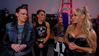 Chelsea Green and Piper Niven couldn't resist rubbing salt in the wound, taunting Tegan and Natalya whom they successfully defended the titles against one week prior. Chelsea said Niven and her were going to leave the building until they heard Nox and Natalya had a match. Chelsea poked fun at Nox and Natalya persisting as a tag team, accusing Natalya of using Nox as her meal ticket but that it's not working and nobody is buying it. Natalya had to hold the fiery Tegan back from giving Chelsea another SMACK after Green told Natalya to move on.
