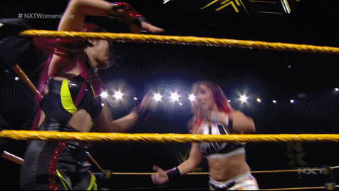 Nox used the ropes to get to her feet, goring Shirai in the gut with a headbutt as Io came at her. Shirai fell to the canvas where she got smashed with a hammering blow to the back of her skull. Hard shots were traded as they tried to remain on their feet. ending with Shirai grabbing Nox by the hair and whipping her back-of-skull first to the canvas. Shirai took no respite, handspring driving her knees down into Nox's lungs. Tegan's eyes were bulging out of her head from the impact of the double knees but she still had enough in her to kick out of a pin attempt.