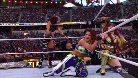 IYO and Bayley got Trish to the floor. Becky and Lita made the save. In a moment of sheer insanity that had Dakota's "little friends" thinking they would make a comeback, Lita and Becky assisted Trish in bringing Our Captain off the top rope with a Stratusphere to the floor onto Bayley and SKY. Back in the ring, Kai got worked over but fought through the pain like Our Captain always does because she's the fucking Captain. When opportunity presented itself, Bayley dragged Dakota to their corner and tagged herself in.