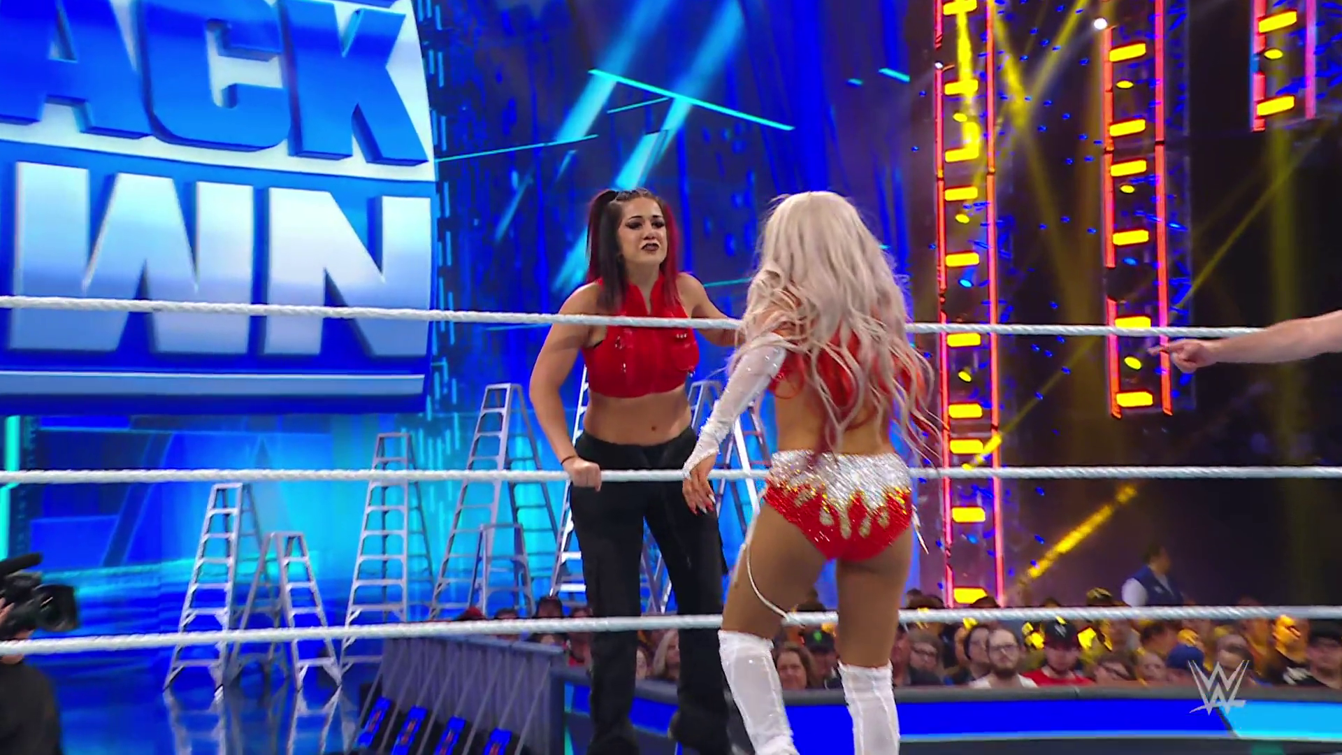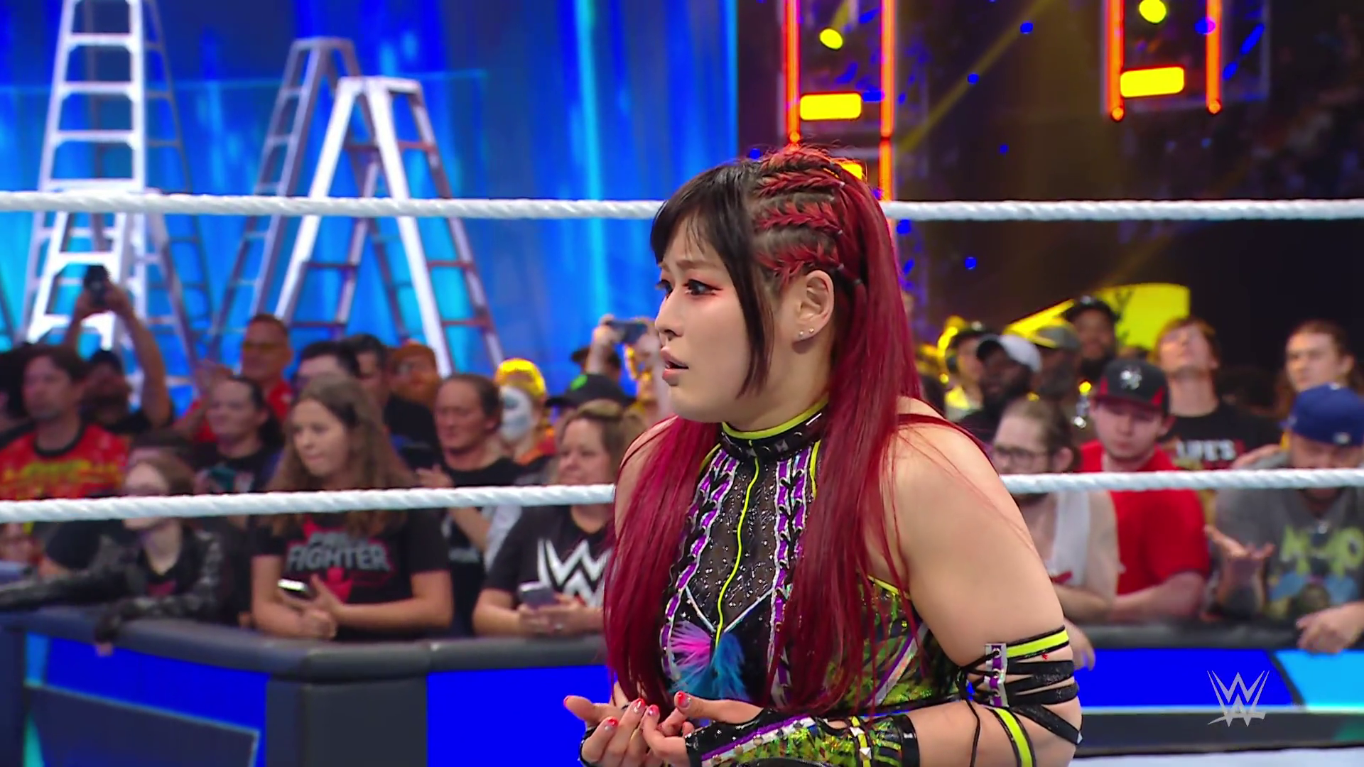 Vega struck SKY down with the 619 and stacked her up for the pinfall victory. Bayley was apologetic to IYO but that didn't calm SKY's anger. Moments later backstage, IYO shouted at Bayley to stop getting involved in her matches. Bayley told IYO she needs to accept all the help she can get right now. IYO questioned if Bayley trusts her. Bayley insisted she does but the ladder match will be every woman for herself so to let her do what she has to do right now. This heated discussion was intruded upon by Shotzi.
