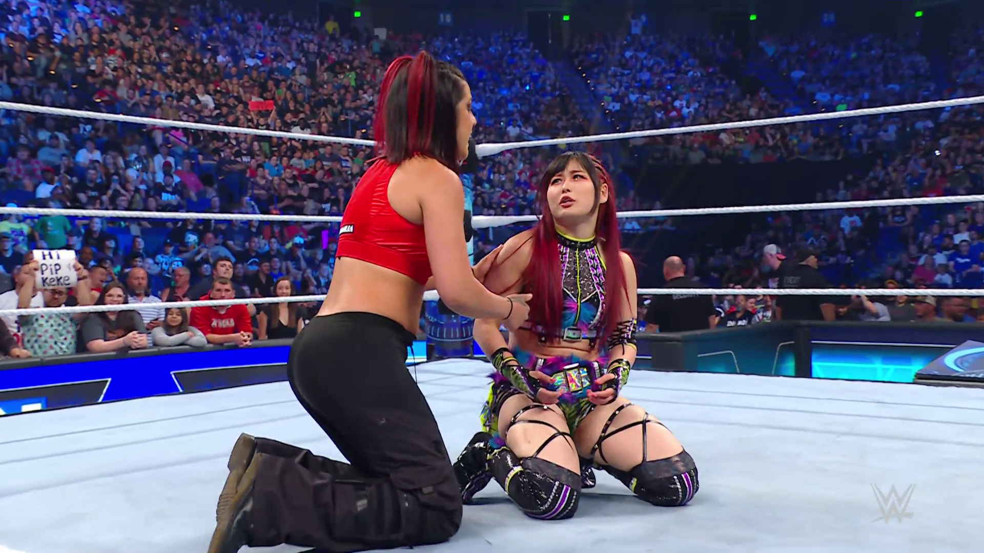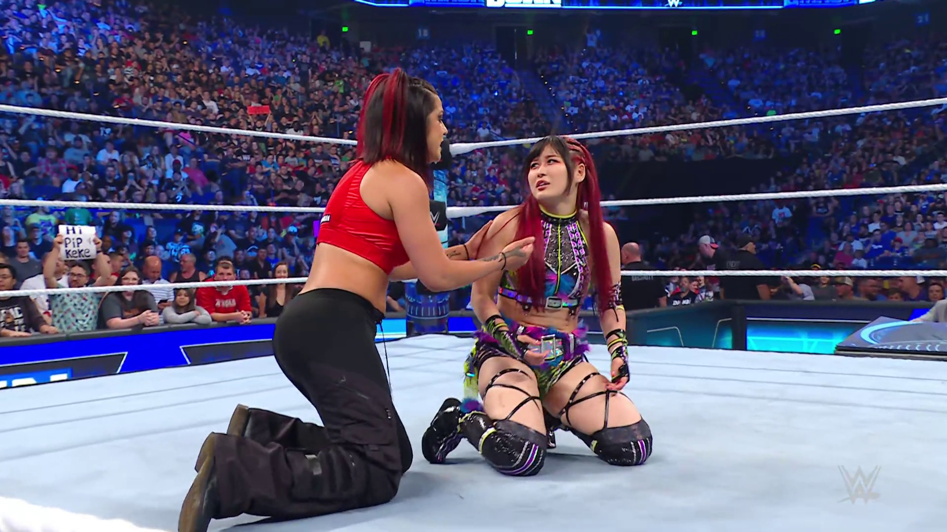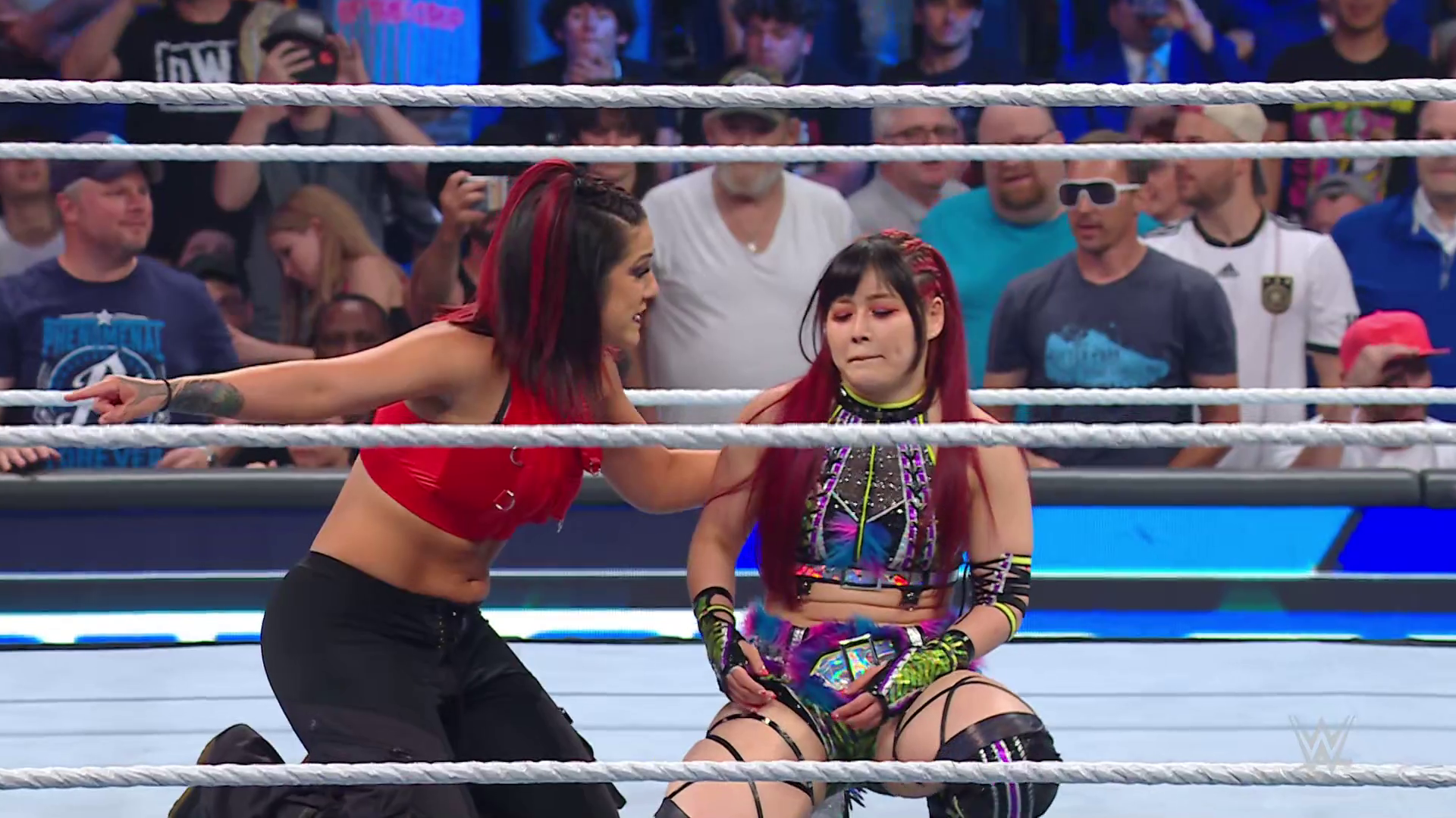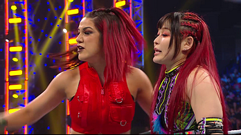 On the June 16th 2023 episode of SmackDown, IYO faced Zelina. Bayley got up on the apron to provide a distraction to assist SKY. IYO came up behind Vega to roll her up for a pin only for Zelina to counter with a waistlock. SKY nearly collided with Bayley. The referee was distracted admonishing Bayley, missing SKY countering Vega's waistlock into a roll-up. Bayley shouted at the referee to return his attention to the match, pointing at the pin. The referee was too late and Vega kicked out. IYO turned her gaze to Bayley, shouting aggressively at her.