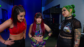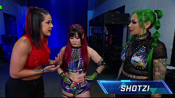 Shotzi was still mad that Bayley cost her the qualifying match against IYO. The Role Model told her she doesn't belong in Money in the Bank because she isn't on Damage CTRL's level. Bayley laughed at Shotzi challenging her to put her Money in the Bank match spot on the line. IYO told Shotzi that Bayley accepted. Shotzi left to get the match made official. Bayley slapped SKY across the shoulder, asking her why she did that. IYO mischievously smiled, responding she was just trying to help. Bayley had that miffed but knows she walked right into that reaction.