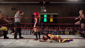 Team Slap Happy vs. Rhia O'Reilly & Saraya Knight at SHIMMER Volume 76